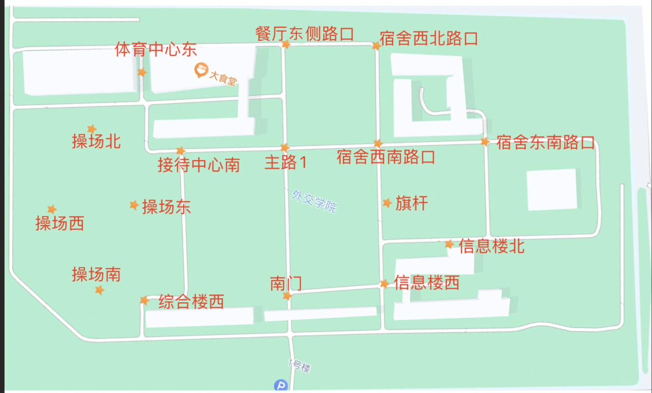 3、地点:健康跑地点为沙河校园内。分别在田径场、教学楼、宿舍楼等地点或附近设置虚拟感应考勤点,参加跑步的学生按照系统给出的随机点位进行健康跑活动。